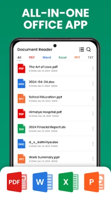 All files are no longer hidden in the mobile. The all document reader and viewer will help you find file list easily. It also provides for read all files, deleting, renaming, and sharing files. See file information like file path, file size, last modified date, etc.