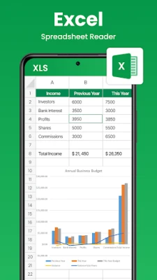 Excel reader to view and read your all excel files quickly and easily. You can manage your chart, data analyses, and more while you are viewing your workbooks with xlsx reader.