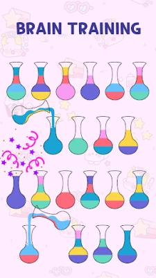 This colorful game seems easy but relaxing game - pouring water - to train your brain. The higher level you reach, the harder it gets since there are more tubes to arrange colors.