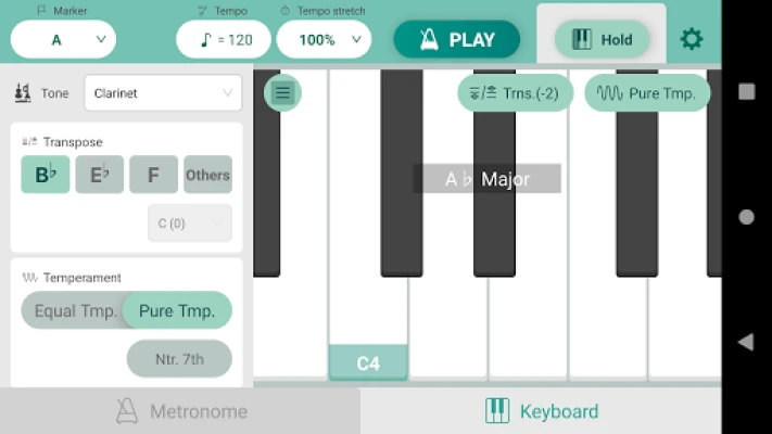 - Temperament: Equal tempered / Pure tempered (major) /Pure tempered (minor)