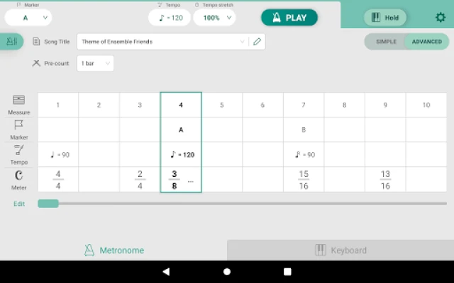 - You can set not only 4/4 or 6/8, but also any complicated times like 19/16.