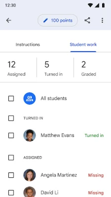 • Improves organization – Students can see all of their assignments on an assignments page, and all class materials (e.g., documents, photos, and videos) are automatically filed into folders in Google Drive.