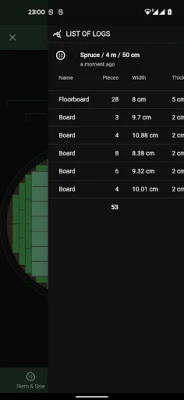 log Band calculates the exact cutting pattern from the plait diameter and the length of the log. You can see a list with the yield of the sawn timber assortments before you start cutting.