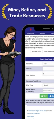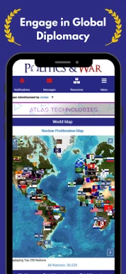 Engage in diplomacy with other nations by creating and joining alliances with other players. You can sign treaties, enforce political and economic sanctions, cooperate in global wars, and more. Work together with other players to compete for economic, militaristic, and diplomatic dominance in the game.