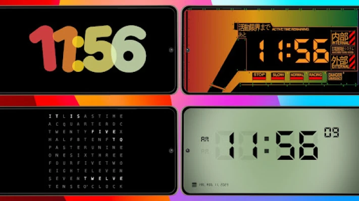 Transform your screen with a variety of fullscreen digital and analog clocks:
