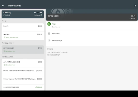 Here’s what you can do with Volt CU: Keep your transactions organized by allowing you to add tags, notes and photos of receipts and checks. Set up alerts so you know when your balance drops below a certain amount Make payments to companies or friends with ease Transfer money between your accounts Deposit checks instantly by taking a picture of the front and back Find branches and ATMs near you Secure your account with a 4-digit passcode or biometric on supported devices